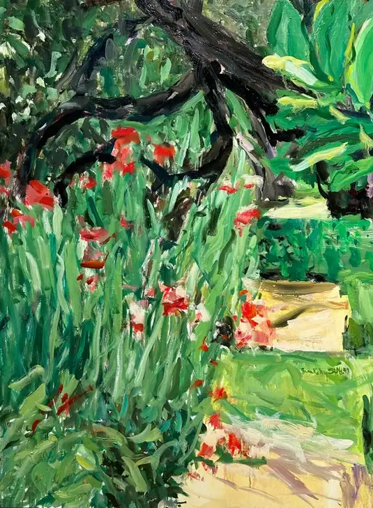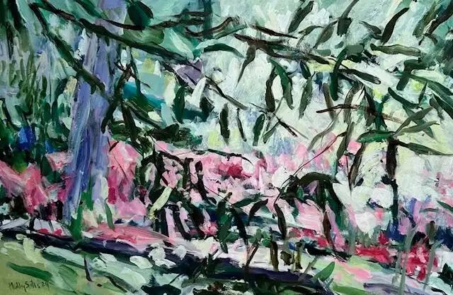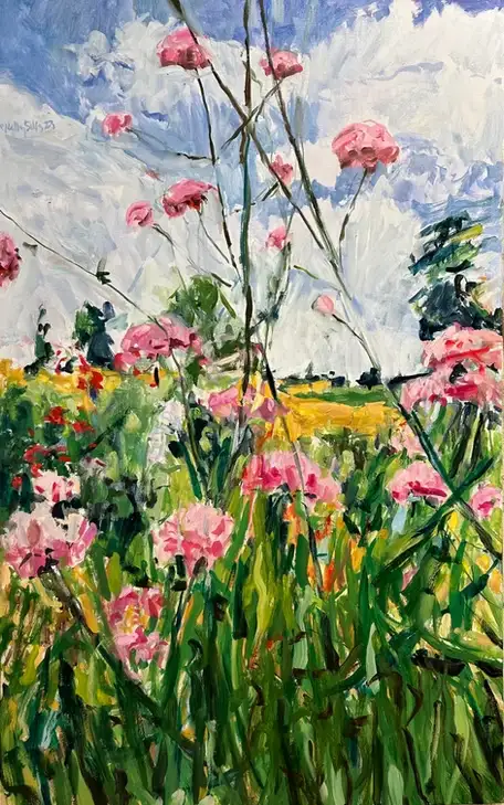 Her paintings involve the spectator with lessons learned from the achievement of others, as well as her own experiences and discoveries. Her work continues to reference nature-lush landscapes, and botanical imagery. It owes much to the examples of Cezanne and Matisse, as well as more contemporary sources including Hodgkin and Hockney. Sills’ paintings are about tension and about how one experiences nature through color, form, and space.
