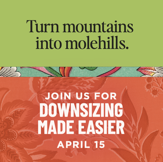 BRING YOUR QUESTIONS. LEAVE WITH CONFIDENCE. Learn from the experience of local pros who will offer tips on how to make downsizing less daunting, get valuables accurately appraised, and prepare your home for sale. Space is limited and RSVP is required. Sorting through years of accumulated possessions is a daunting task for anyone. Fortunately, there are experts who specialize in every aspect of the downsizing and moving process. Join three of the best as they share valuable insights, expert advice, and helpful answers to your downsizing questions.